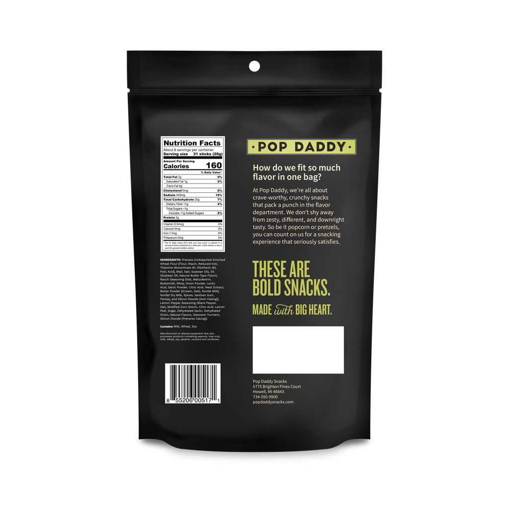 Pop Daddy Snacks - Pop Daddy – Peppercorn Ranch Seasoned Pretzels 7.5oz