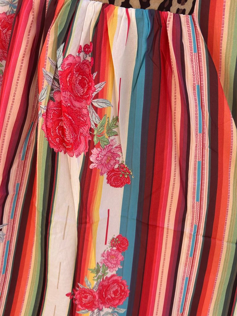 Surapee bright colors and floral designs accented with a cheetah v-neck and ruffle sleeve dress.
