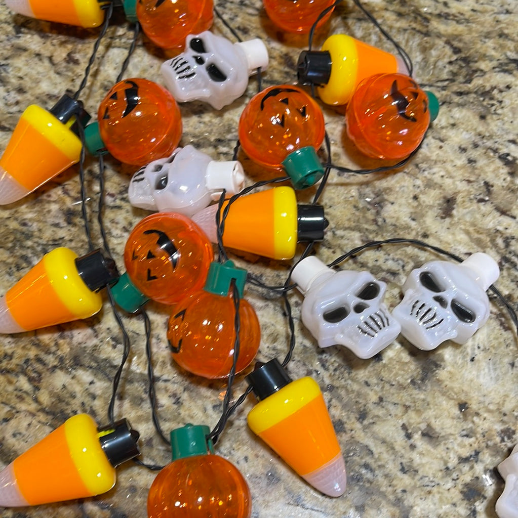 Jumbo Flashing Halloween Necklace -3 styles Has switch to turn off and on and blinks 3 flash modes. Has 9 Led lights on it and plastic ornaments (pumpkin, skulls,candy corn)